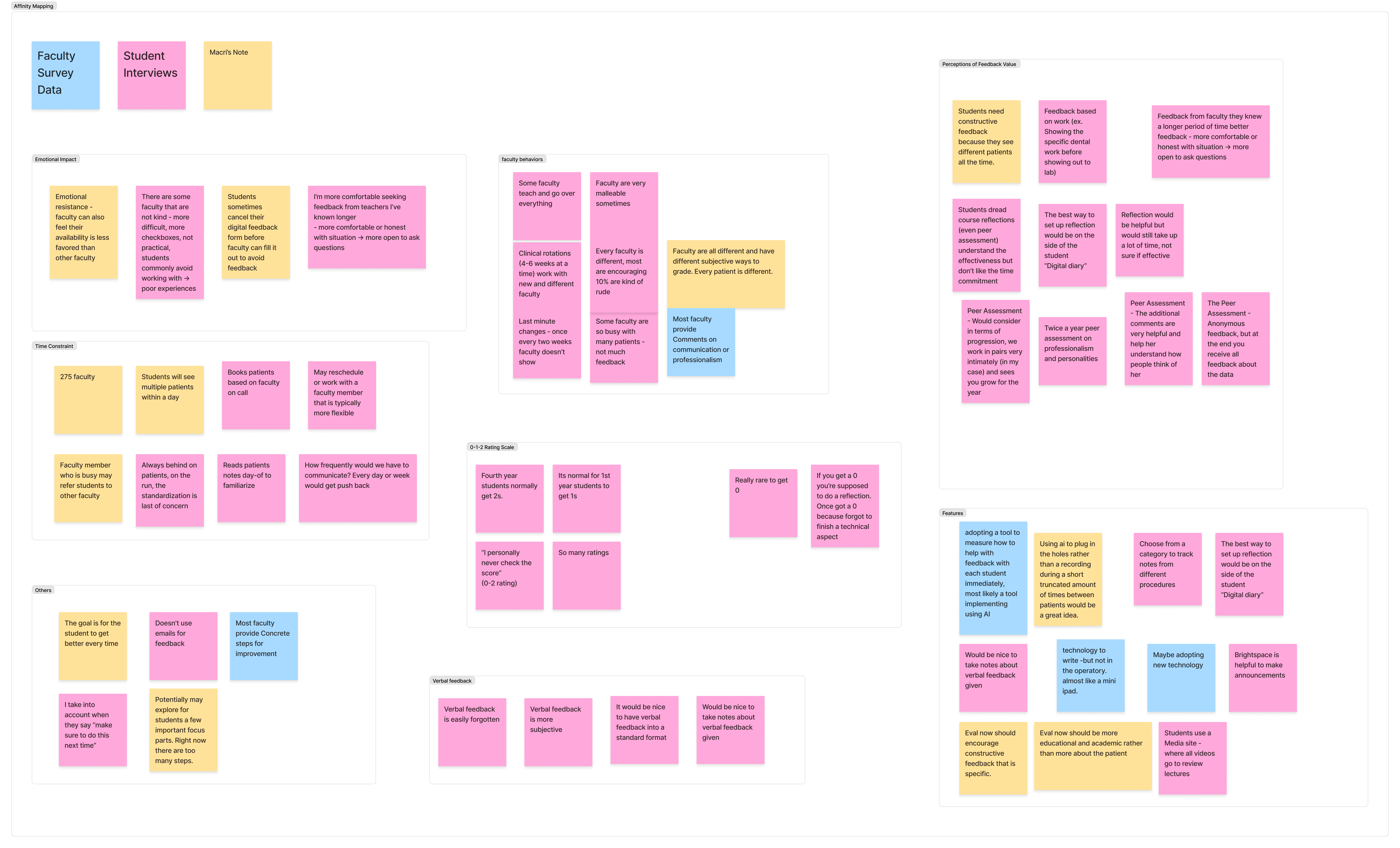 Affinity Diagram of Faculty Surveys, Student Interviews, and Client Notes