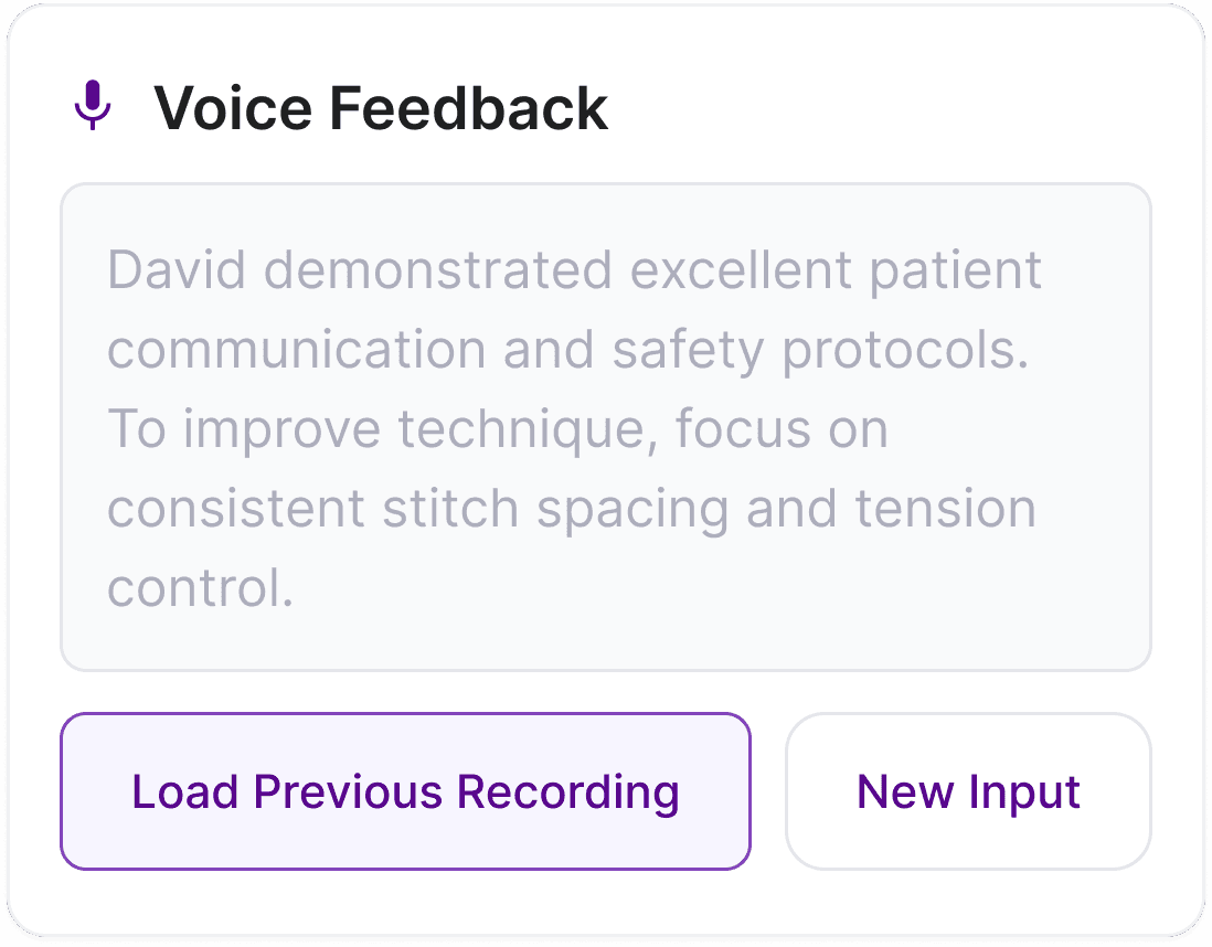 Our literary research emphasizes that effective clinical feedback must be both timely and embedded within existing workflows, allowing instructors to capture brief, in-the-moment insights without disrupting care or increasing cognitive load. The literature also highlights the importance of bidirectional feedback, where students and faculty reflect on the same clinical encounter, compare perspectives, and engage in structured dialogue, transforming feedback from a one-way evaluation into an ongoing learning conversation.
